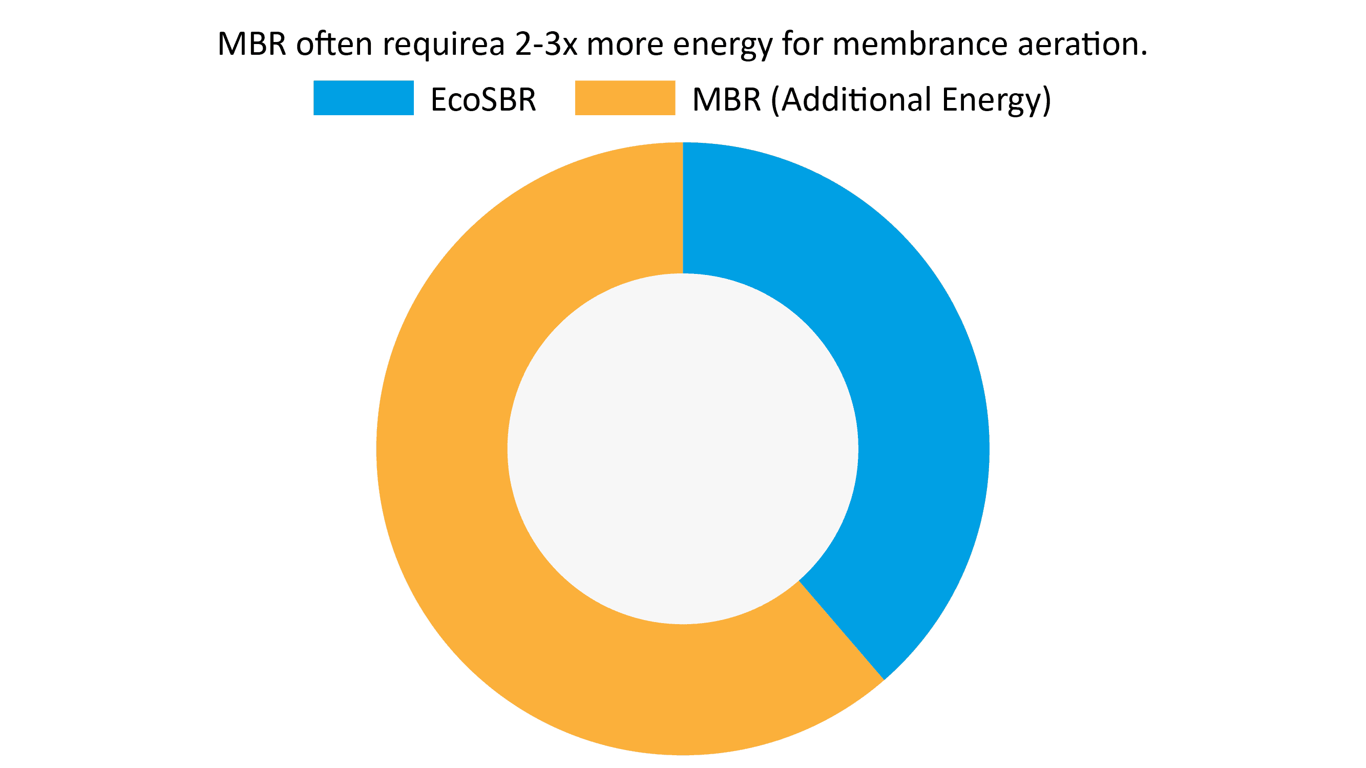 MBR requires 2-3x more air for biological treatment and constant membrane scouring, resulting in significantly higher energy use.